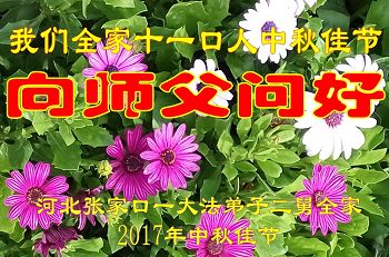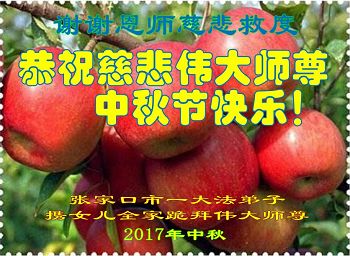 【明慧网二零一七年十月二日】 河北省张家口市大法弟子恭祝师尊中秋节快乐!