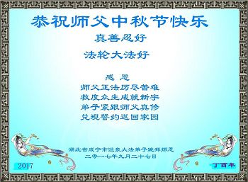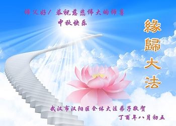我们湖北云梦全体大法弟子一定努力学好法,做好三件事,决不辜负慈悲伟大师尊的慈悲苦度! 湖北省武汉市汉阳区全体大法弟子恭祝慈悲伟大的师尊丁酉年中秋快乐!