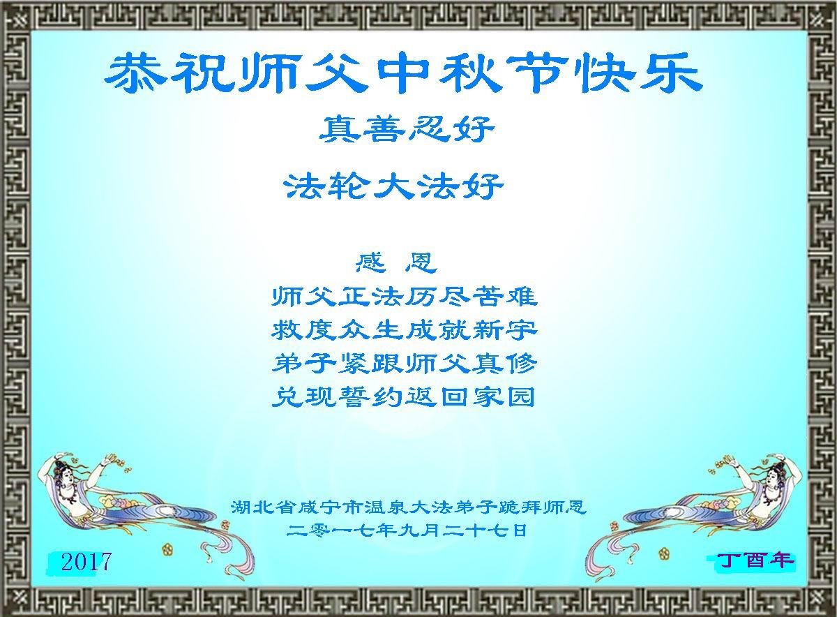 湖北省咸宁市温泉大法弟子恭祝师父中秋节快乐! 感恩 师父正法历尽苦难 救度众生成就新宇 弟子紧跟师父真修 兑现誓约返回家园 湖北省咸宁市大法弟子恭祝师父中秋节快乐!
