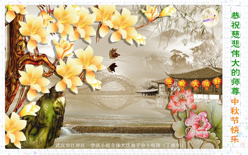 湖北省武汉江岸区全体大法弟子恭祝伟大慈悲的师尊中秋节快乐!