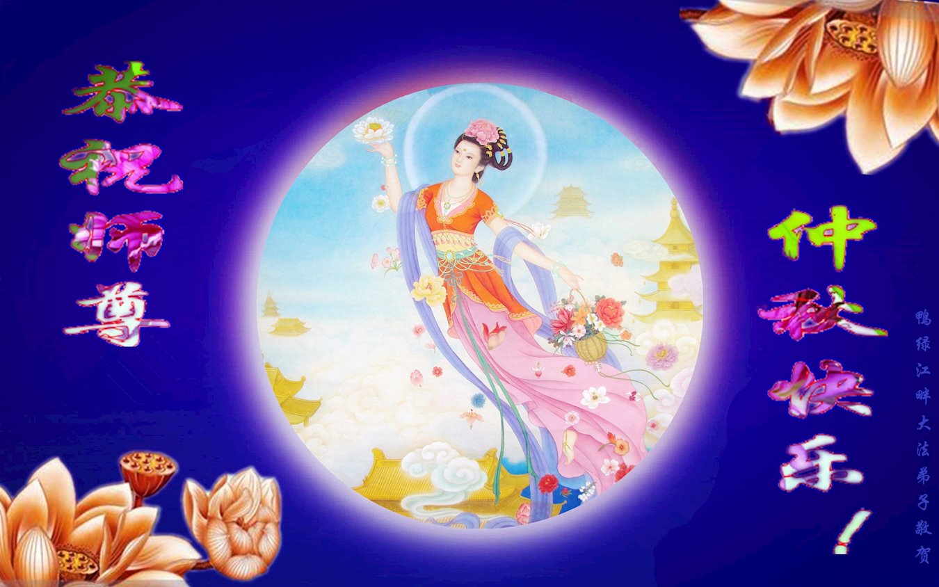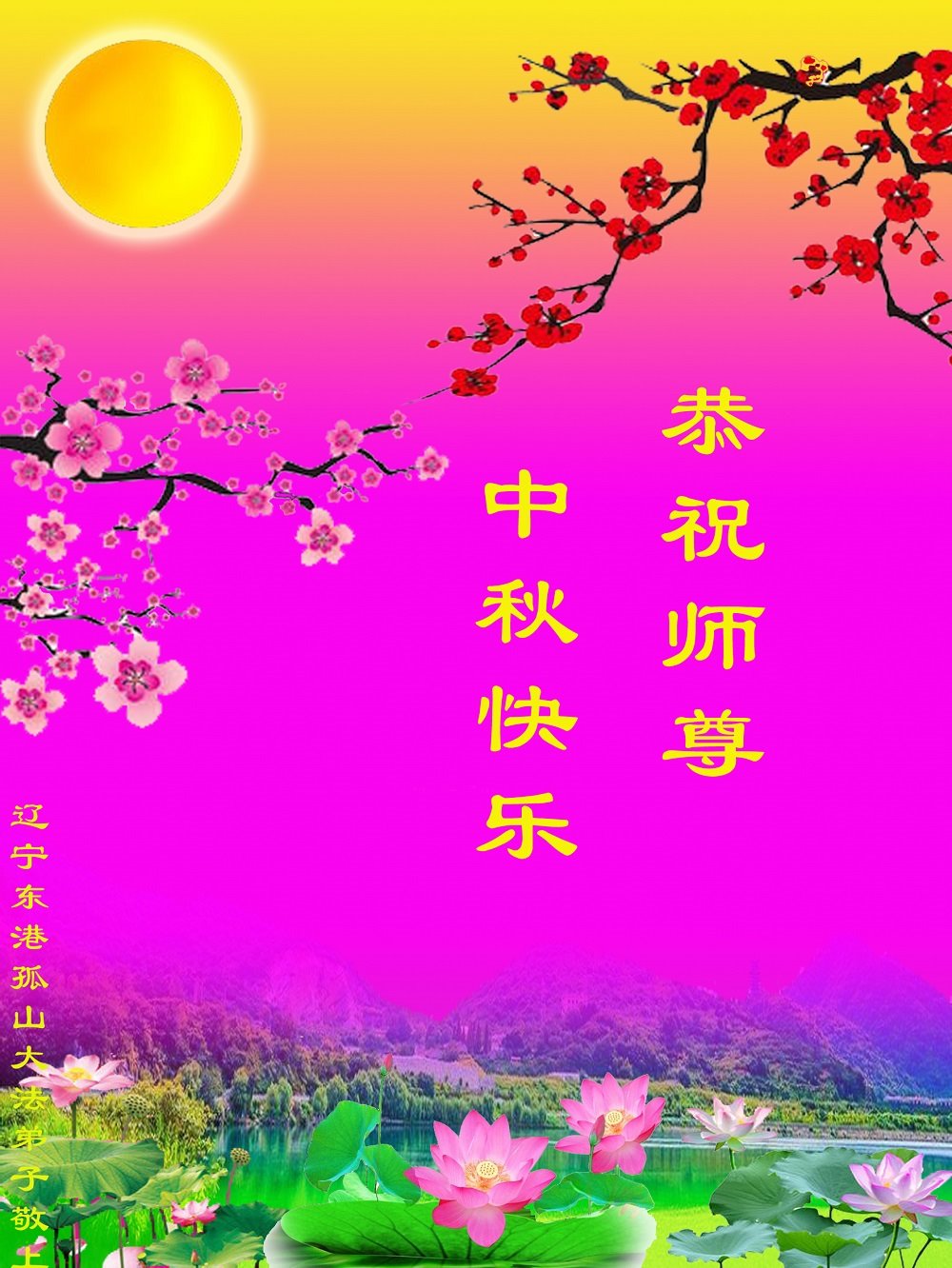 在中秋佳节到来之际,弟子万分想念师父,弟子叩谢伟大师尊,恭祝师父中秋快乐! 仰望师恩,人言用尽,也难表达弟子对师父的无限感恩!在前所未有的邪恶考验中,弟子心中时刻不忘伟大师尊苦度弟子的浩荡佛恩,牢记师父的谆谆教诲,十八年来,弟子以法为师,坚定正念。在师尊的慈悲呵护下平安的走到今天!多少次弟子仰望师父都会泪流满面,尽管每天弟子跪在师父像前以最纯净的心叩拜叩谢伟大师尊,但那也只是代替语言表达弟子对师父感恩的一种形式,实际上,弟子的心每时每刻都被师父的浩荡佛恩感动着,激励着。 师父啊,人言实在太有限,用什么语言也表达不尽弟子对师父的无限感恩! 在普天同庆同祝同颂师尊正法圆满成功的最后时刻到来之前,东港市全体大法弟子一定珍惜师父给弟子延续来的这最后无比珍贵的修炼时间,继续做好大法弟子三件事,走好走正师父安排的最后的路!愿师父多一份欣慰,少一份操劳!祝师父永远快乐!祝师父正法顺利,圆满成功! 辽宁省东港市全体大法弟子再次恭祝师父中秋快乐!再次叩拜伟大师尊! 辽宁省鞍山大法弟子恭祝师父中秋快乐!