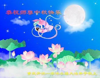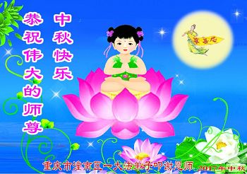 尊敬的师尊您好!值此中秋佳节,重庆弟子们遥祝您节日快乐!感恩师尊当初将弟子从肮脏的地狱中捞起、洗净,将伟大的佛法洪传于弟子,使我们明白了生命的真正意义是修炼升华、返本归真。弟子一定听师尊的话,学好法和修好自己,信师信法走好修炼之路,完成使命跟随师尊回家。 重庆市渝北区大法弟子恭祝师尊中秋快乐!