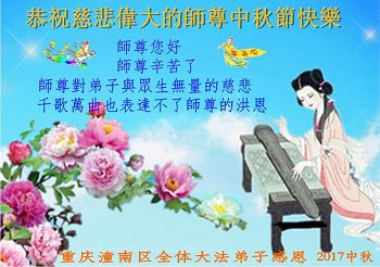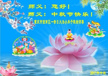【明慧网二零一七年十月二日】 重庆市沙坪坝区一大法弟子恭祝师尊中秋快乐!