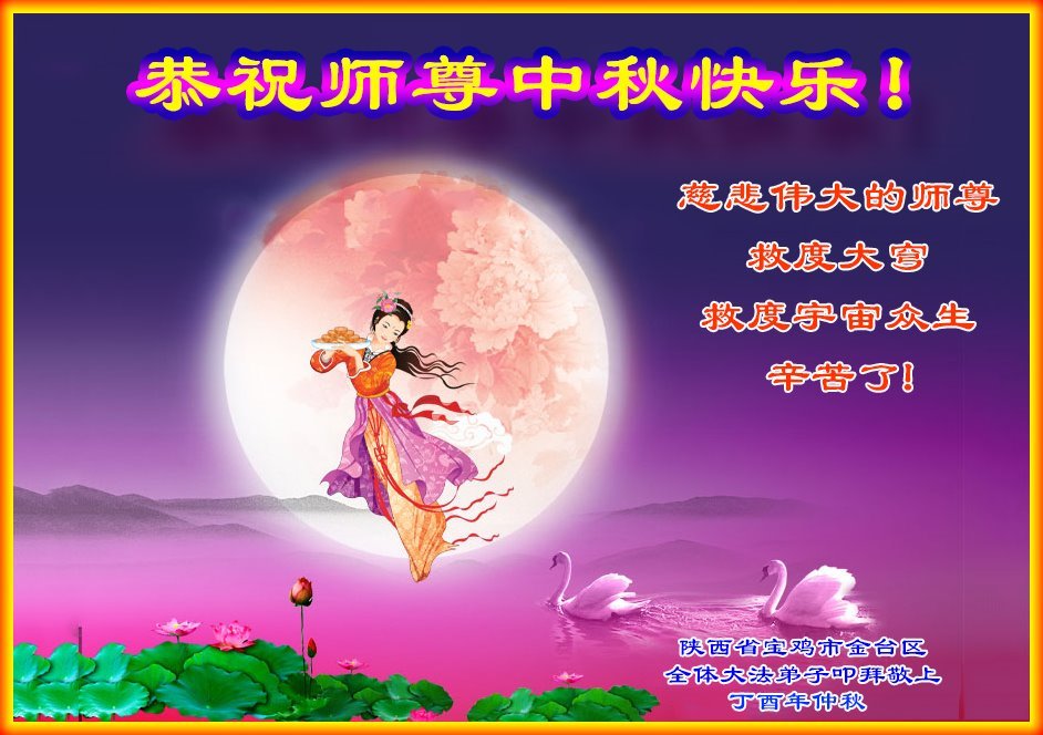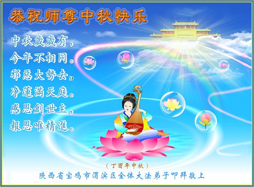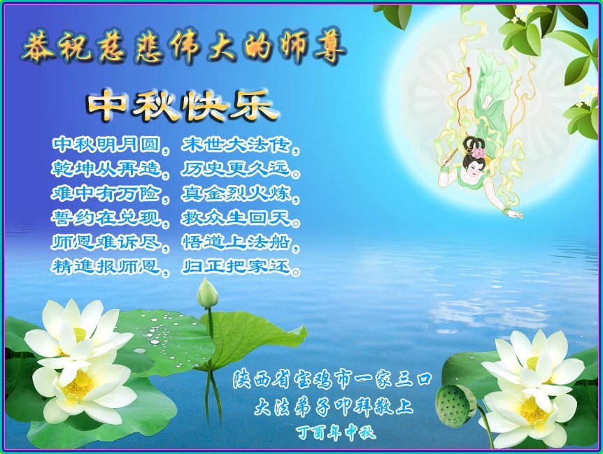 【明慧网二零一七年十月二日】 陕西省宝鸡市大法弟子恭祝师尊中秋快乐!