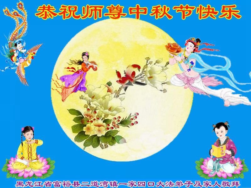 黑龙江省齐齐哈尔市富裕县二道湾镇一家四口大法弟子及家人恭祝师尊中秋节快乐!
