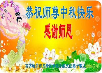 黑龙江省齐齐哈尔市龙沙区学法小组大法弟子恭祝师尊中秋节快乐! 黑龙江省齐齐哈尔市龙沙区学法小组大法弟子敬上 黑龙江省齐齐哈尔市富裕县全体大法弟子祝师父中秋快乐!
