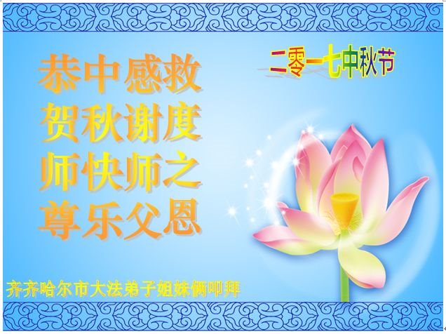 黑龙江齐齐哈尔铁锋区全体大法弟子恭祝师尊中秋快乐!
