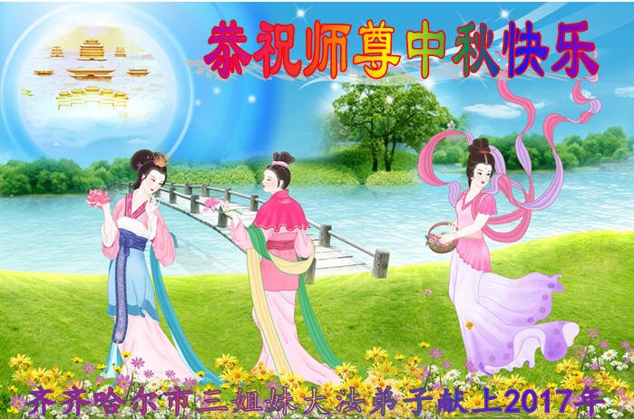 黑龙江省齐齐哈尔市三姐妹大法弟子恭祝师尊中秋节快乐!