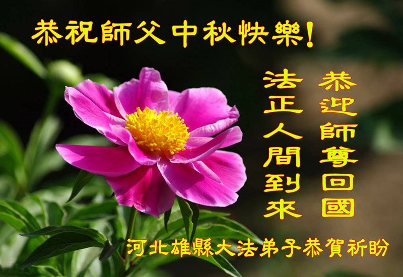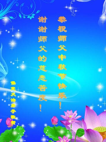 师父辛苦了!我们一定做好三件事,向内找,多救人,请师尊放心! 河北省保定市雄县大法弟子恭祝师父中秋快乐!