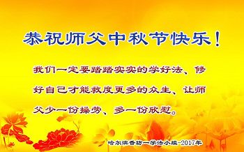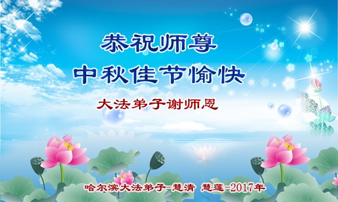 【明慧网二零一七年十月二日】 黑龙江省哈尔滨市双城市区八名大法弟子恭祝师尊中秋节快乐!
