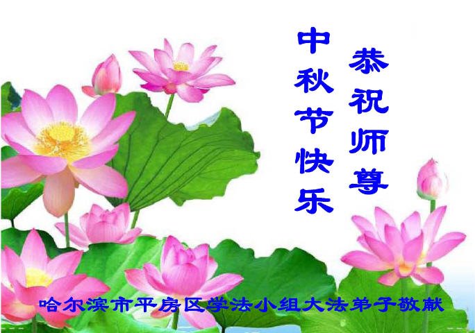 黑龙江省哈尔滨市平房区学法小组大法弟子恭祝师尊中秋节快乐!