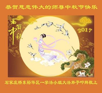 河北省石家庄市中华大街一学法小组大法弟子叩拜敬上 二零一七年中秋 河北省石家庄全体大法弟子恭祝师尊中秋快乐!