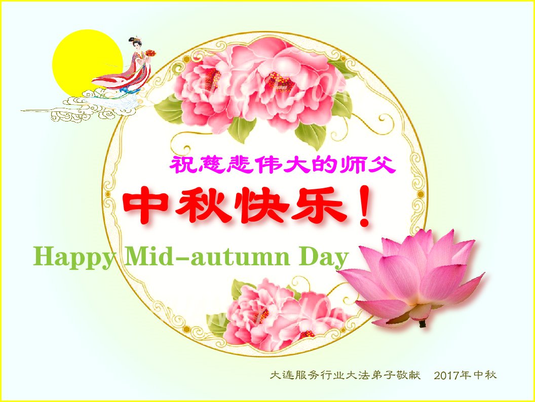 【明慧网二零一七年十月二日】 辽宁省大连服务行业大法弟子祝师父中秋快乐!
