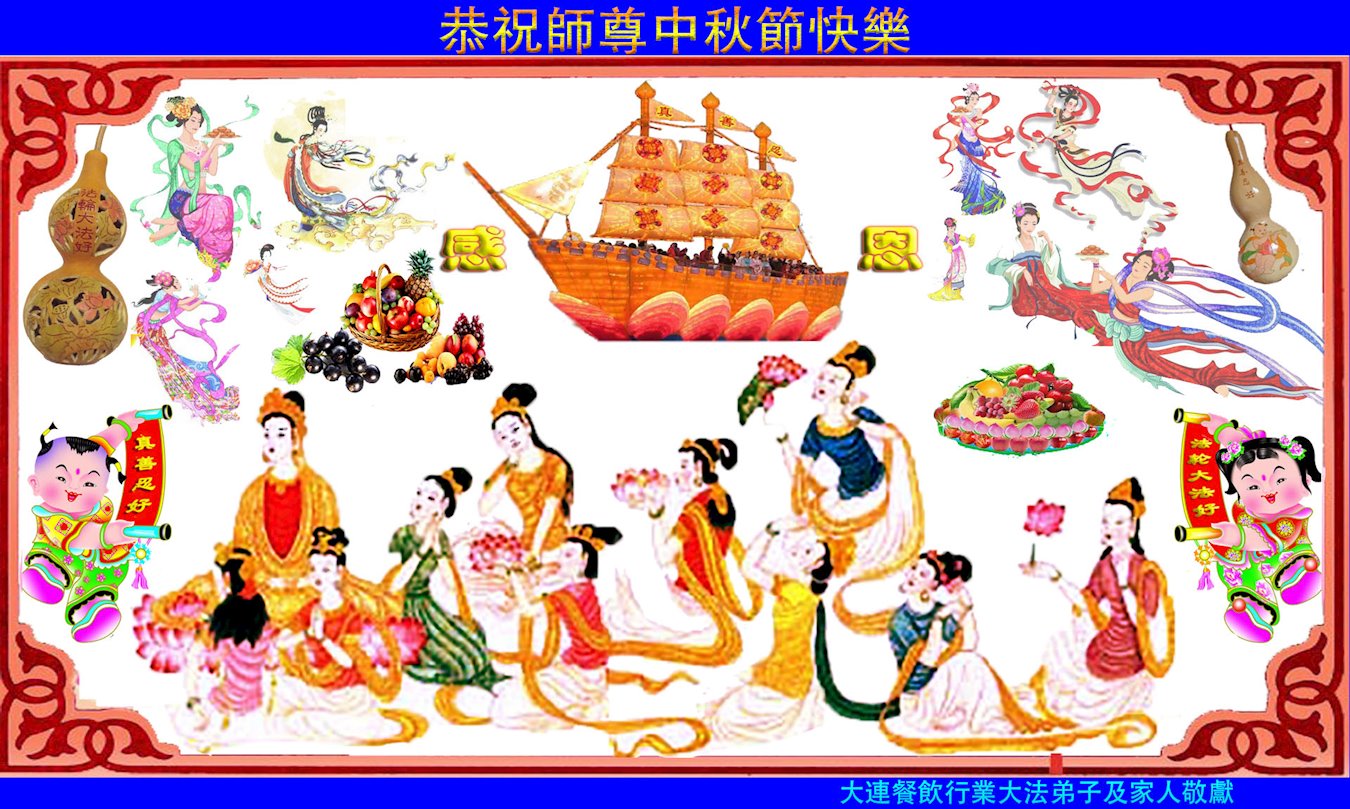 师父好!弟子想念您!感恩师父慈悲救度!弟子一定修好自己多救人,圆满随师还。中国工商银行大法弟子叩拜! 辽宁大连餐饮行业大法弟子及家人恭祝师尊中秋节快乐!