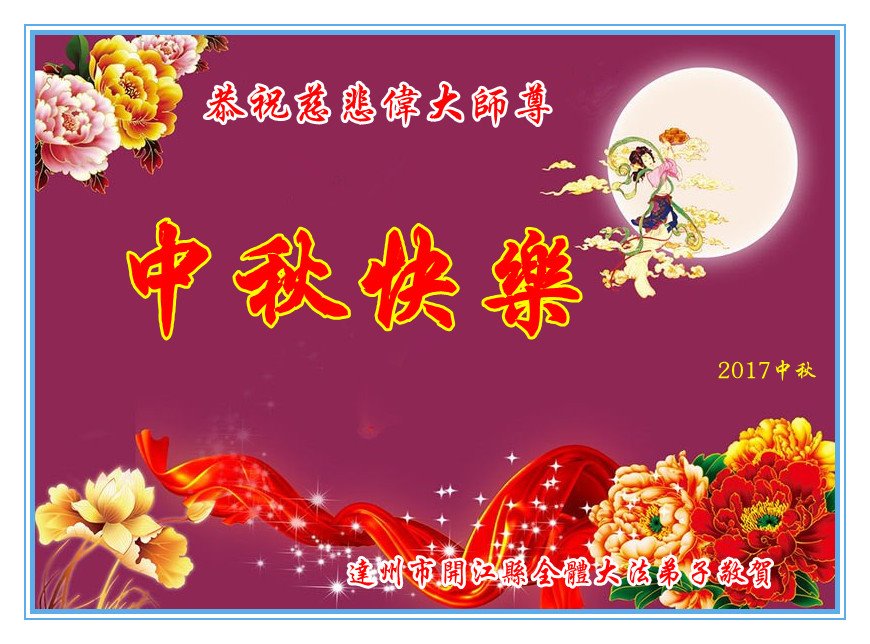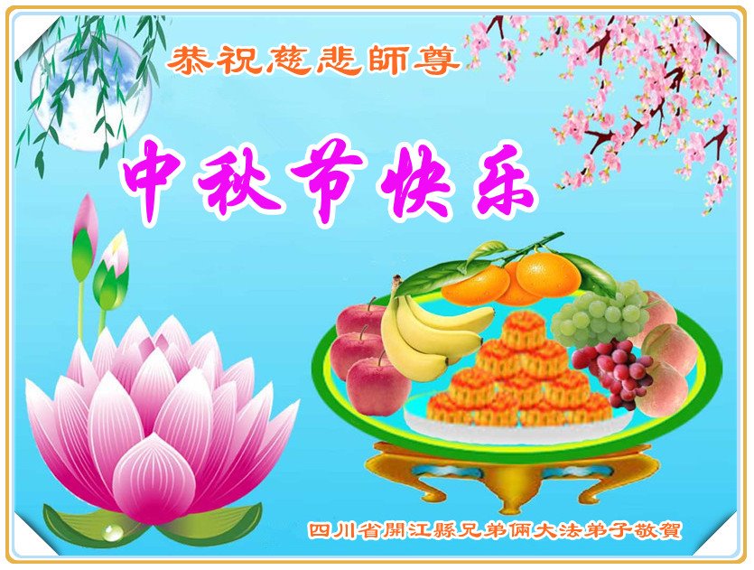 【明慧网二零一七年十月二日】 四川省达州市开江县兄弟俩大法弟子恭祝慈悲师尊中秋节快乐!