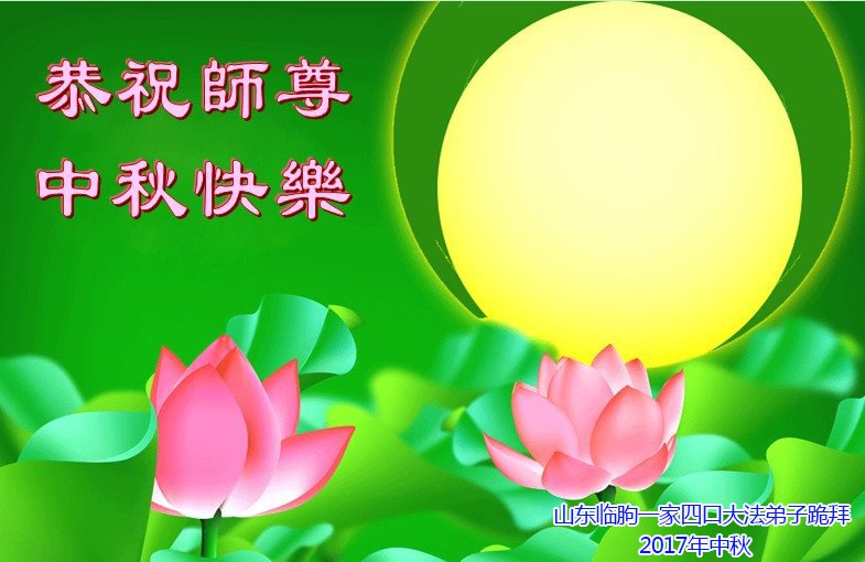 山东临朐一家四口大法弟子恭祝师父生日快乐! 山东省威海市乳山一学法小组恭祝慈悲伟大的师尊中秋节快乐!