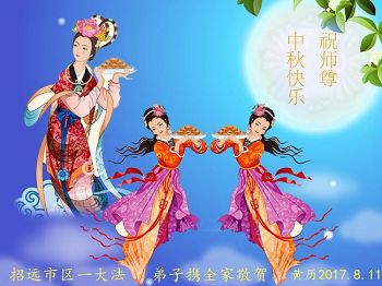 谢谢师父对我们母子俩的慈悲保护与苦度! 山东省烟台市招远市姐妹俩大法弟子恭祝慈悲伟大的师尊中秋节快乐!