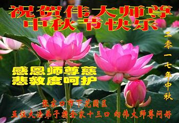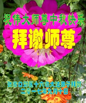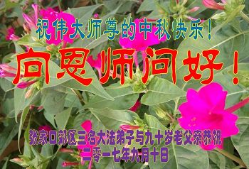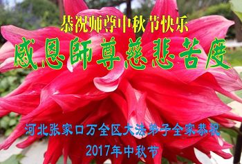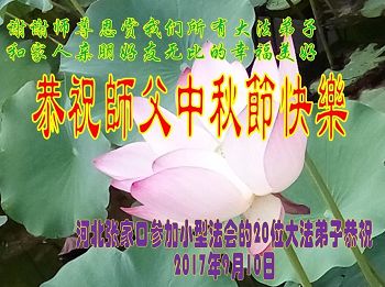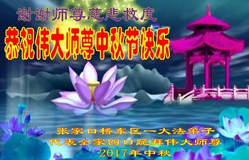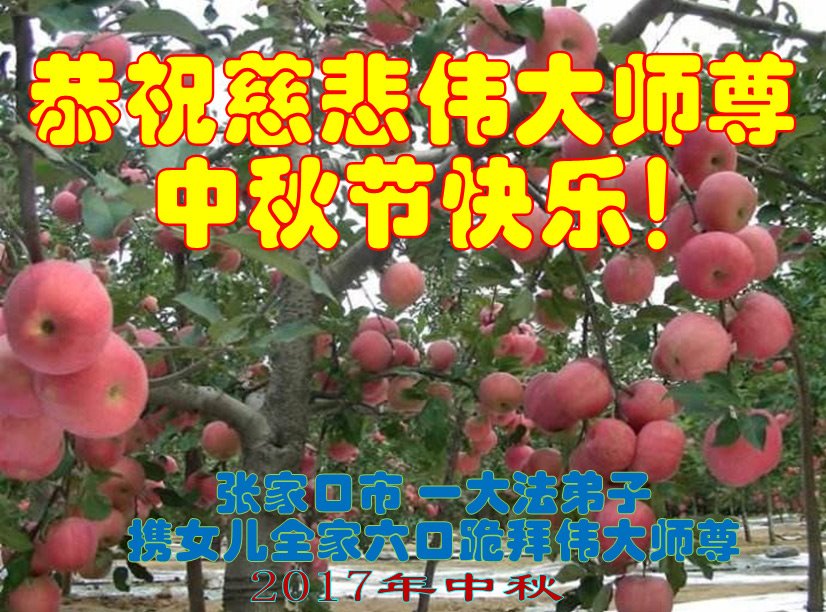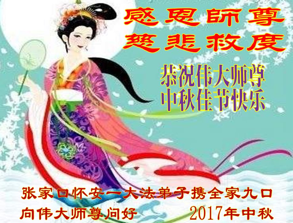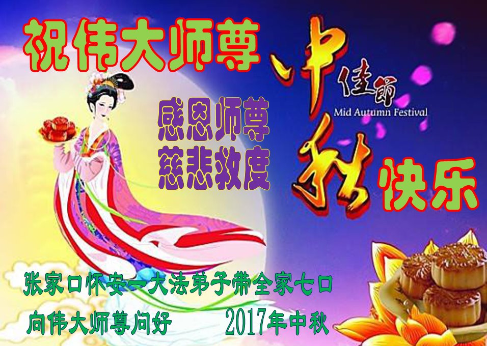 河北省张家口市一大法弟子代表六位家人及明白真相得救的众生恭祝师父中秋节快乐!盼望师父早日回国! 二零一七年九月十五日 |