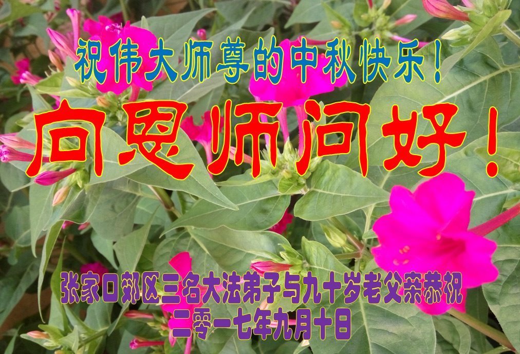 河北张家口郊区三大法弟子与九十岁老父亲恭祝 二零一七年九月十日 张家口与北京的二十位大法弟子恭祝师父中秋节快乐!