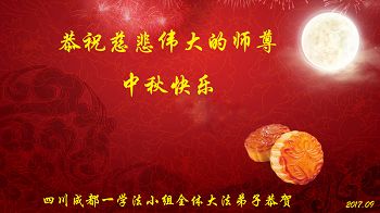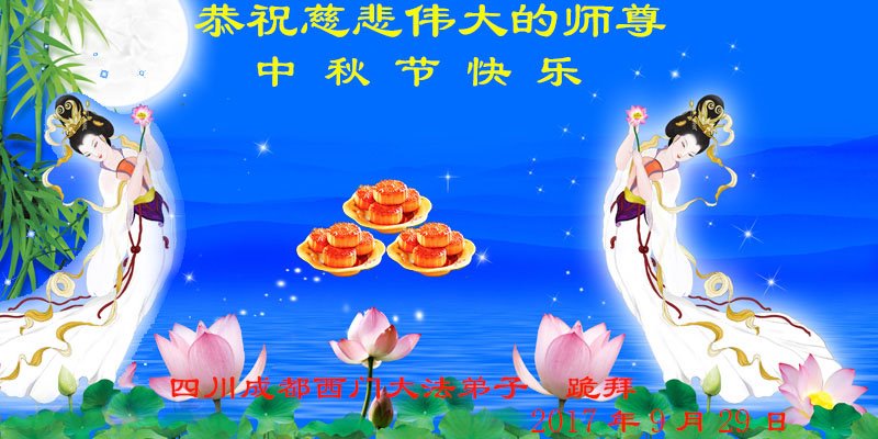 【明慧网二零一七年十月二日】 四川成都大法弟子恭祝慈悲伟大的师尊中秋节快乐!