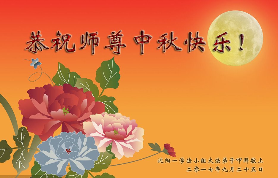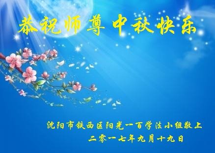 【明慧网二零一七年十月二日】 辽宁省沈阳一学法小组大法弟子恭祝慈悲伟大的师尊中秋节快乐!
