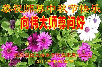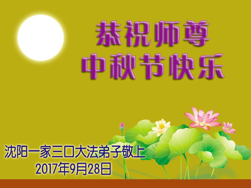 沈阳市一家六口大法弟子恭祝师尊中秋节快乐!感谢师尊慈悲苦度! 沈阳市一家六口大法弟子敬上! 辽宁省沈阳大法弟子俩姐妹大法弟子恭祝慈悲伟大的师尊二零一七年中秋节好!