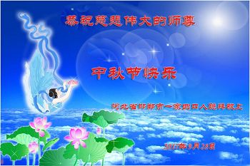 【明慧网二零一七年十月二日】 河北宣化开发区一学法组恭祝师尊中秋节快乐!