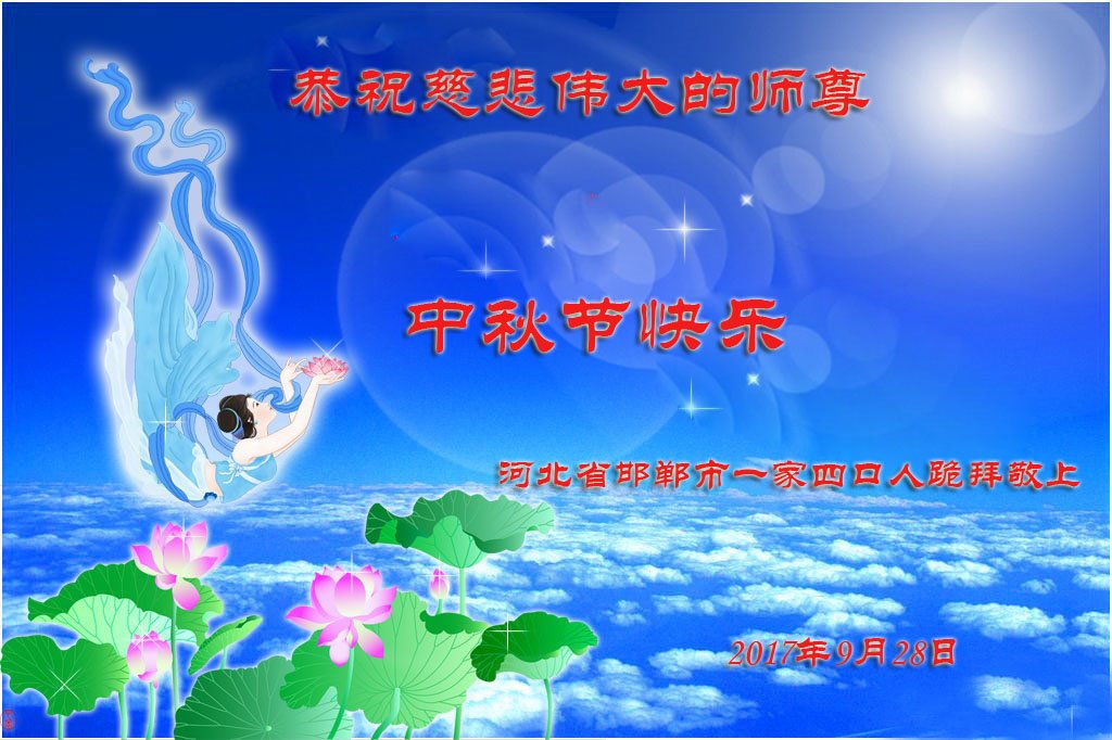 恭祝伟大的师尊中秋节快乐! 河北省邢台市沙河市一学法小组跪拜 河北省邯郸市一家四口人恭祝慈悲伟大的师尊中秋节快乐!