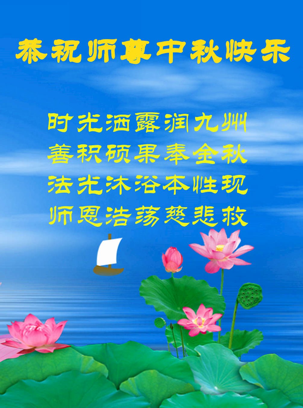 贺师尊 锥峰脚下,伊水河畔, 无处不留下师尊慈悲的保护------ 人生的绝望, 上天无路,入地无门, 是师尊引领我走上神途, 返本归真,不再迷茫! 世风日下, 师尊《转法轮》的导航, 使弟子不随波逐流, 不再道德下滑! 危难来临, 是师尊加持弟子, 坚定了信念,化解了渊源, 给了弟子无数次新生! 走在漆黑的山路, 是师尊的佛光, 照亮了弟子的心田, 信心百倍,健步前行! 缘遇世人, 是师尊引领,把真相传递, 驱散了邪恶, 给众生带来了光明! 伟大的师尊, 您给了我衣食住行, 给了我一切, 更给了我通天的正气…… 感恩您加持弟子继续前行! 合十 弟子叩首跪拜师尊 河北省衡水市阜城县大法弟子祝师尊中秋快乐!