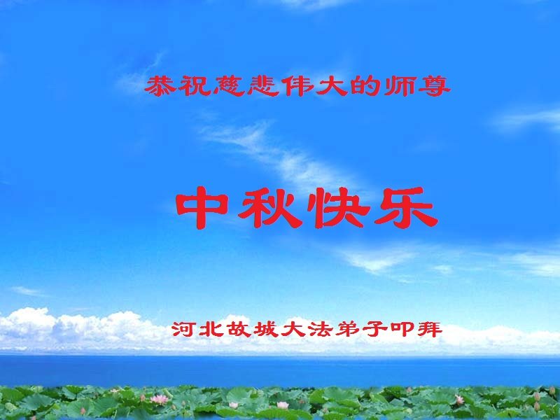师父辛苦了! 时间过的真快,中秋节即刻到来,祝师尊节日愉快! 弟子心情难过感觉对不起师尊!弟子让师尊操心了!我最近在救人上做的不好,懈怠。求安逸,弟子一定突破怕心这一障碍!去一切人心!牢记师父的教导!多学法,学好法!修好自己,多救人!完成大法弟子的使命! 河北省沧州地区学员叩拜慈悲伟大的师尊! 河北省邢台市任县全体大法弟子祝师父中秋节快乐!