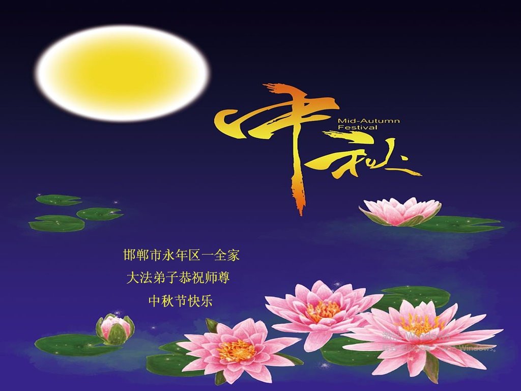 祝师父中秋节快乐!中秋佳节思师恩 ,千言万语难诉尽。唯有实修三件事,踏踏实实修炼人。 河北省邯郸市永年区临名关镇北西街夫妻俩大法弟子恭祝师父中秋节快乐!