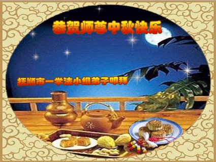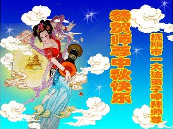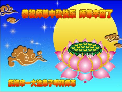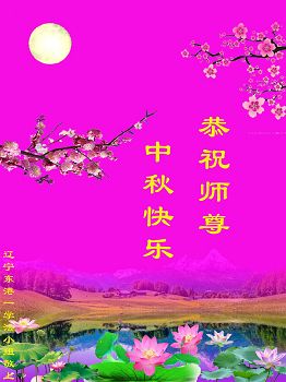 恭祝伟大慈悲师父中秋节日快乐! 弟子一定要珍惜这大法修炼机缘,要多学法,坚定信师信法的正念,尽心做好三件事,坚定的修炼到底,让师父放心! 辽宁省辽阳一老年大法弟子恭祝师尊中秋快乐!
