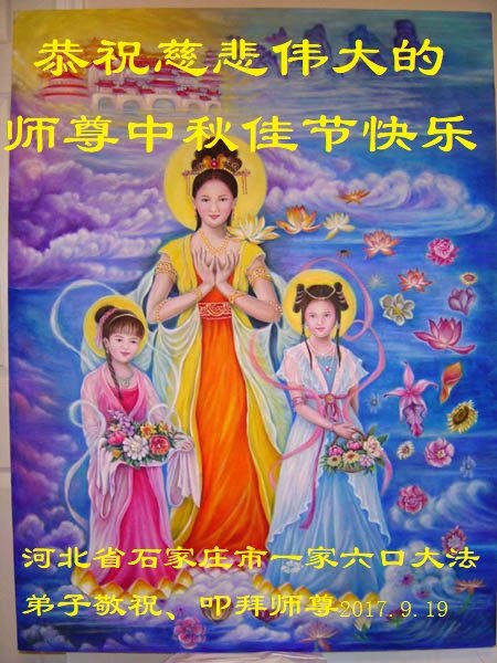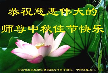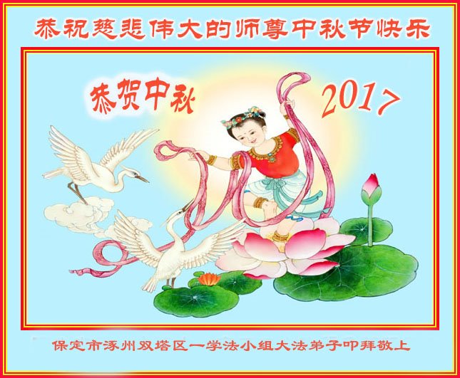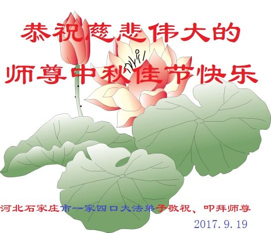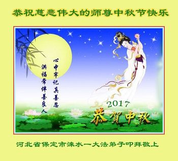 【明慧网二零一七年十月三日】 河北省保定市涞水县一大法弟子恭祝慈悲伟大的师尊中秋节快乐!