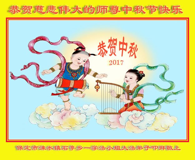 河北省保定市涞水镇石亭乡一学法小组大法弟子叩拜敬上 二零一七年中秋 大陆山西省晋城项目小组大法弟子恭祝师父中秋节快乐!