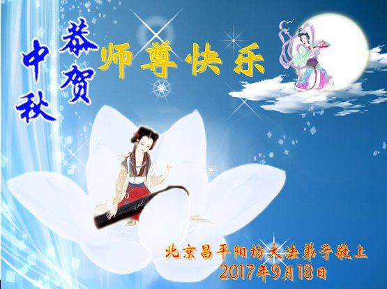 师尊啊师尊,您用法船度我们到圣洁中永留! 我们要做好三件事,跟着您一直向前走! 辽宁丹东一组大法徒叩拜 二零一七年中秋 北京昌平大法弟子恭祝师父中秋快乐!