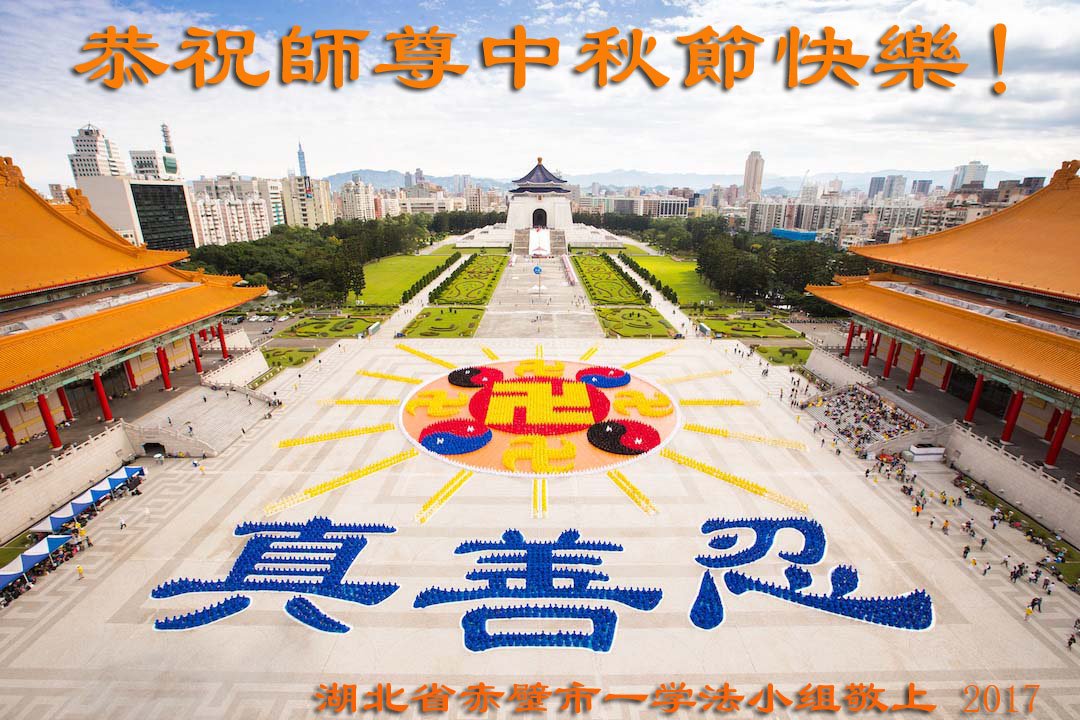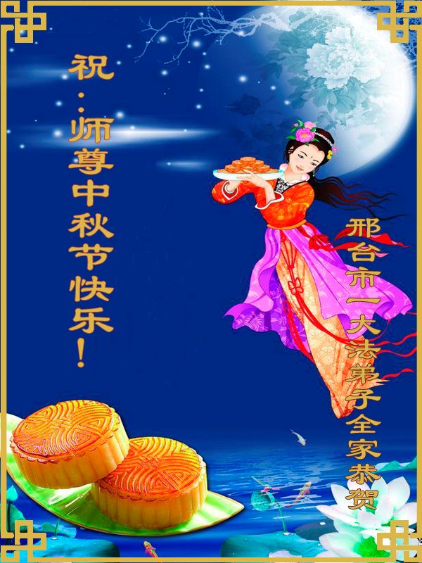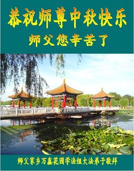 师父您好:弟子们很想念师父,盼师父早日回国,师徒团聚。 叩谢师恩! 湖北咸宁市赤壁市一学法小组恭祝师尊中秋快乐!