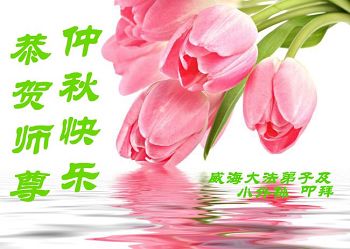 请师父放心,在这正法的最后时刻,我们一定要学好法,保持正念正行,脚踏实地的实修自己。放下情,修出慈悲心,不辜负师父的慈悲苦度与付出。走好师父给安排的修炼路,做好三件事多救人,兑现自己的史前大愿,圆满随师还。 山东省烟台市芝罘区大法弟子恭祝师父中秋快乐!