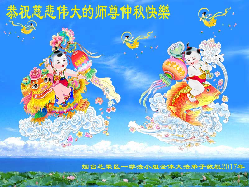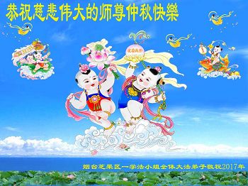 在这中秋来临之际,我们学法小组全体恭祝慈悲伟大的师尊中秋快乐! 请师尊放心,我们一定会认真学好法,才能多救人。踏踏实实的做好三件事,放下执着心,走正师父给安排的修炼路。兑现自己的史前誓约,圆满随师返家园。 山东威海大法弟子暨小外孙恭祝师尊中秋快乐!