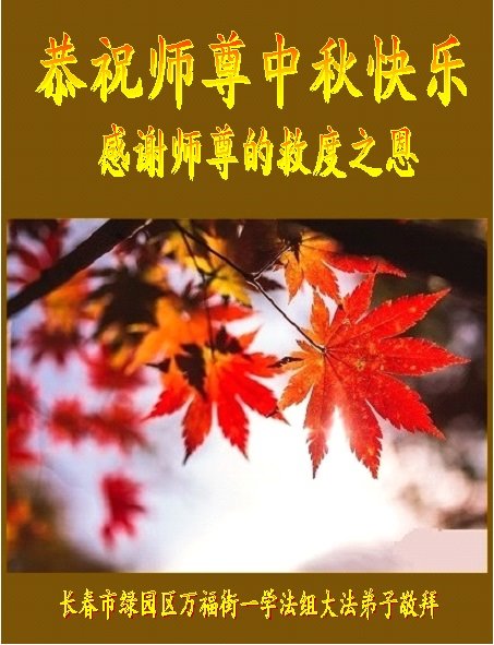 湖北咸宁市赤壁市一夫妻大法弟子恭祝师尊中秋快乐! 吉林省长春市绿园区万福街一学法组大法弟子恭祝慈悲伟大的师尊中秋快乐!叩谢师尊慈悲苦度!