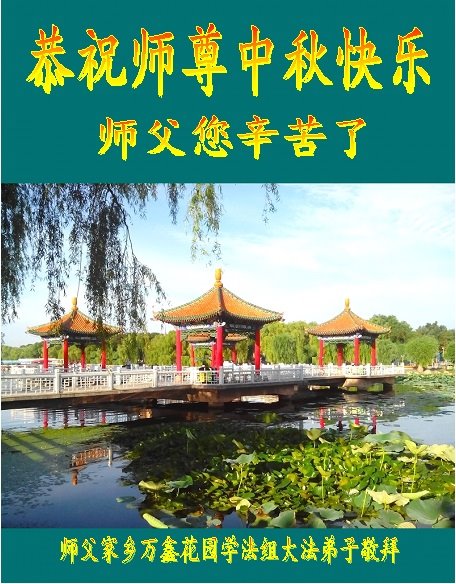 师父家乡万鑫花园学法组大法弟子恭祝慈悲伟大的师尊中秋快乐!叩谢师尊慈悲苦度!