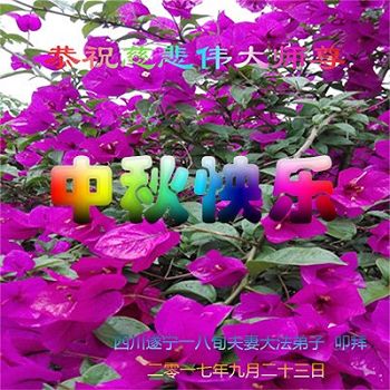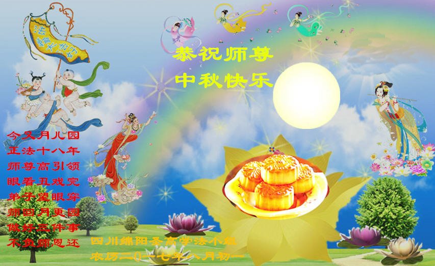 我们要遵师命,在正法的最后时刻,踏踏实实的修好自己,完成好救人的使命,圆满随师还。弟子叩拜师尊! 四川绵阳全家大法弟子恭祝师父中秋快乐!