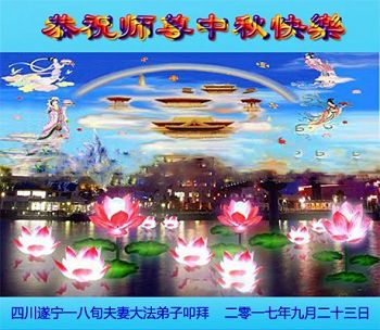四川大法弟子华华及全家人恭祝慈悲伟大的师尊中秋节快乐!