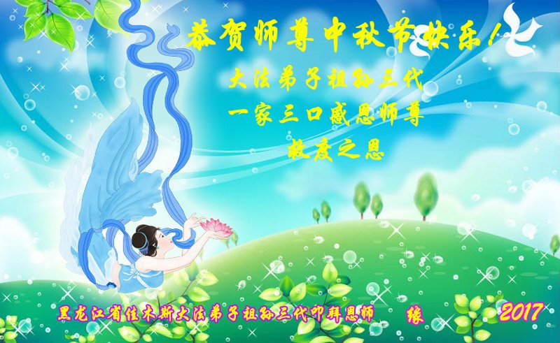 【明慧网二零一七年十月三日】 河北省保定市雄县全家三口恭祝师尊中秋快乐!