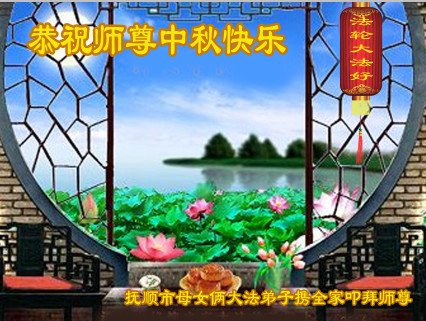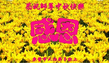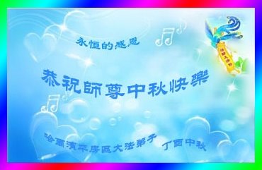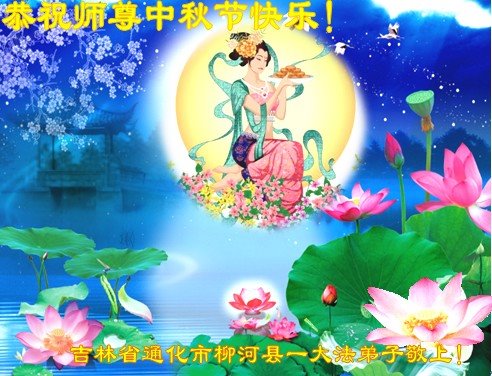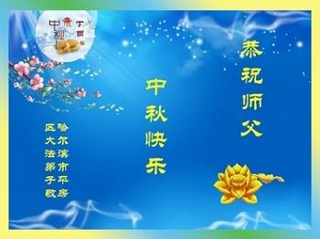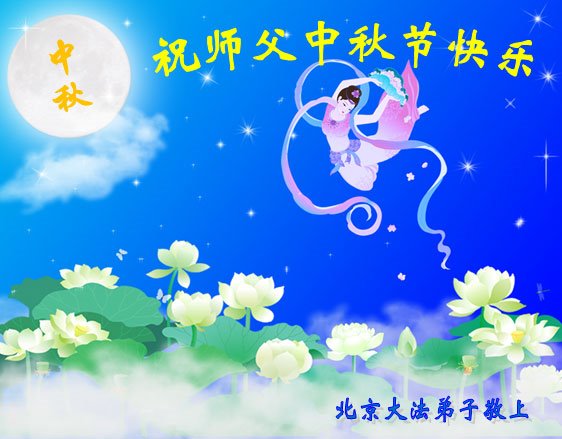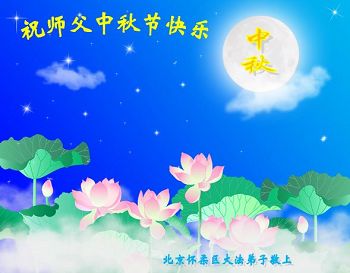师父您好,您辛苦了。谢谢师父的慈悲苦度与一路保护着弟子才走到了今天,在修炼的过程中是师父您看到弟子没在法上的时候,利用各种方式点悟我,又是师父您在弟子正念不足时的加持,才使弟子在最邪恶的环境中一步一步的走了过来。谢谢师父,谢谢您给予的一切。弟子一定在有限的时间里,多学法、学好法,在学好法的基础上,做好三件事和师父回家。愿您早日回大陆。弟子想念您。跪拜师父! 北京大法弟子祝师父中秋节快乐!