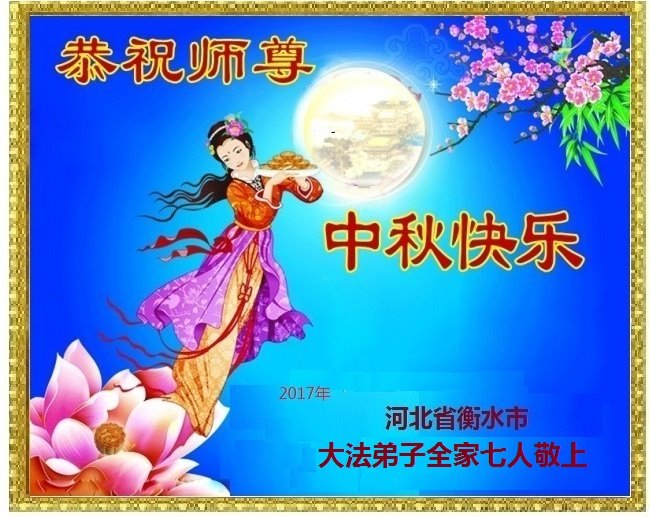 【明慧网二零一七年十月三日】 山东省潍坊市诸城市一大法弟子全家恭祝师尊中秋节快乐!