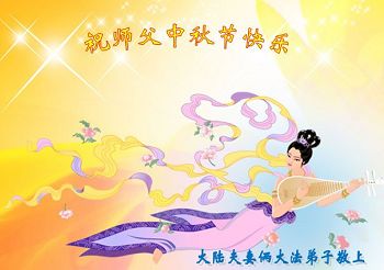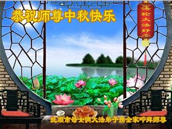 师父您好,您辛苦了。谢谢师父的慈悲苦度与一路的呵护。在修炼的过程中,是师父手把手的拉着弟子一步一步走过来的,弟子深知您为弟子付出了很多的心血。弟子一定珍惜您为弟子做的一切。多学法、学好法,修好自己,做好三件事,和师父回家。愿师父早日回中土。跪拜师父! 大陆夫妻俩大法弟子祝师父中秋节快乐!