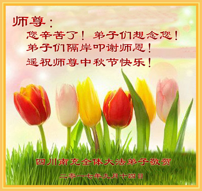 师尊您辛苦了!弟子们想念您!弟子们隔岸叩谢师恩!遥祝师尊中秋节快乐! 四川南充全体大法弟子恭祝师尊中秋节快乐!