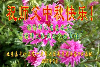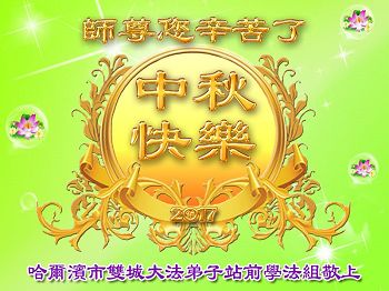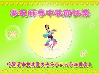 【明慧网二零一七年十月三日】 黑龙江省哈尔滨市双城市区大法弟子三人学法组恭祝师尊中秋快乐!