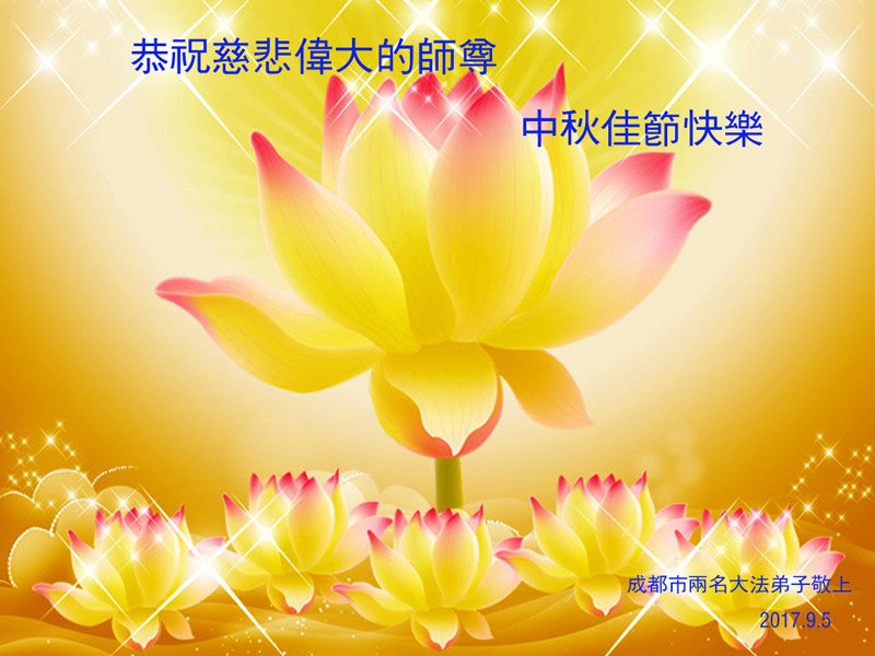 四川省成都两大法弟子恭祝慈悲伟大的师尊中秋节快乐!