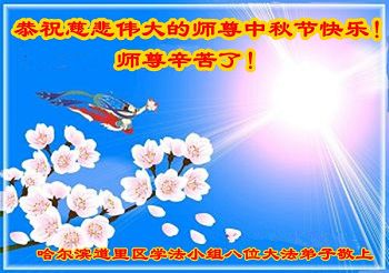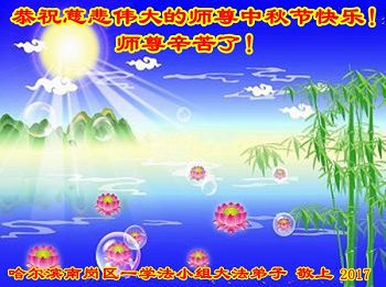 黑龙江省哈尔滨道里区一学法小组八位大法弟子恭祝慈悲伟大的师尊中秋节快乐!